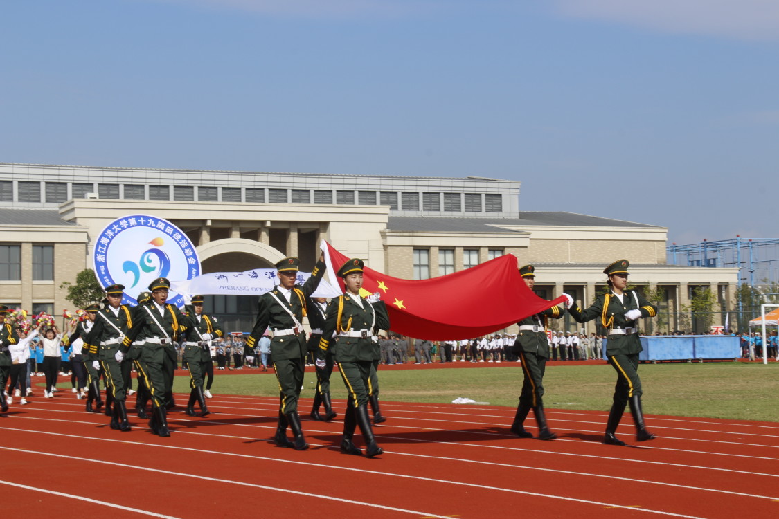 入场式结束后,全场奏响庄严的国歌。随后,吴常文校长代表学校对运动会的隆重举行表示祝贺,向全体运动员、裁判员表达亲切的问候与美好的祝愿,并且预祝此次运动会圆满成功。吴校长讲话完毕后,运动员代表、裁判员代表宣誓。舞龙、啦啦操、少林棍、排舞的精彩节目接踵而来,活力四射的表演,展现了良好的精神风貌,彰显了浙海大学子积极参加阳光体育运动,乐于参与阳光体育运动的一面。