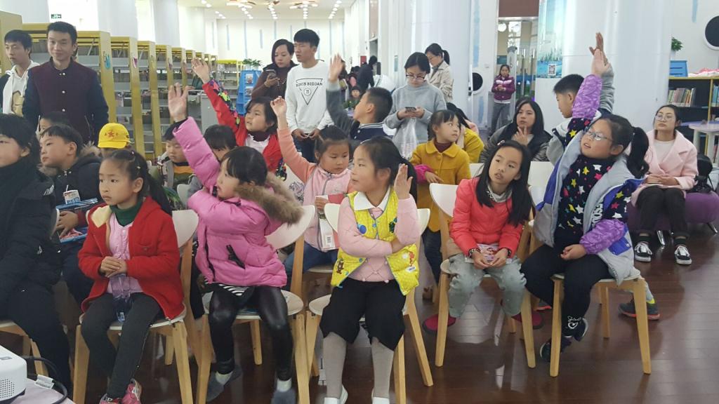 2016年12月11日,williamhill官网登录入口青年志愿者分队开展的“快乐讲堂”活动在舟山图书馆举行。本次活动由青志负责主持,以龟兔赛跑的故事为主题,邀请了少儿阅览室内的小朋友共同参与。