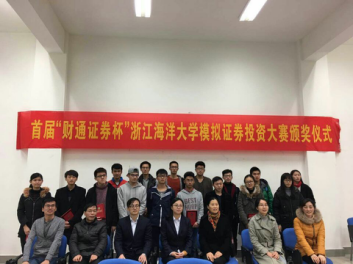 本月12日,由财通证券股份有限公司舟山分公司和校团委主办、williamhill官网登录入口团委承办的首届“财通证券杯”williamhill官网登录入口模拟证券投资大赛正式落下帷幕。