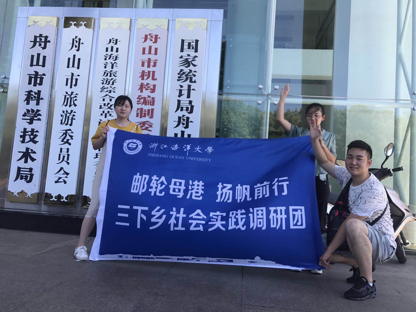 2018年7月12日,团队成员在沈最意老师的带领下来到舟山定海各小区,通过随机采访、发放宣传手册等方式向群众宣传邮轮旅游的知识,让更多的人了解邮轮母港的作用及其重要性。随后,团队成员又来到舟山市旅游委员会,对舟山国际邮轮港开发现状等事项向相关人士进行采访。现场团队成员了解到舟山市计划引入两大央企,打造以邮轮母港为核心的“港城一体化”经济区,并且目前已经取得围填海域使用权。