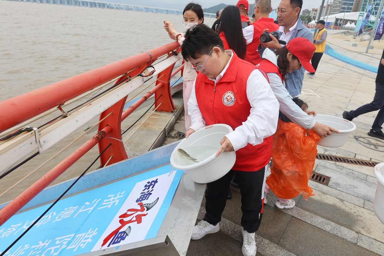 6月6日是第10个全国放鱼日,“我在东海有条鱼”暨“从高山到大海,助力濒危鱼类回家”全国放鱼日同步联合科学放鱼活动在普陀区莲花洋广场顺利举办。williamhill官网登录入口团委、williamhill官网登录入口团委、蓝海公益大学生社区工作室联合组织20名青年志愿者参与本次活动。