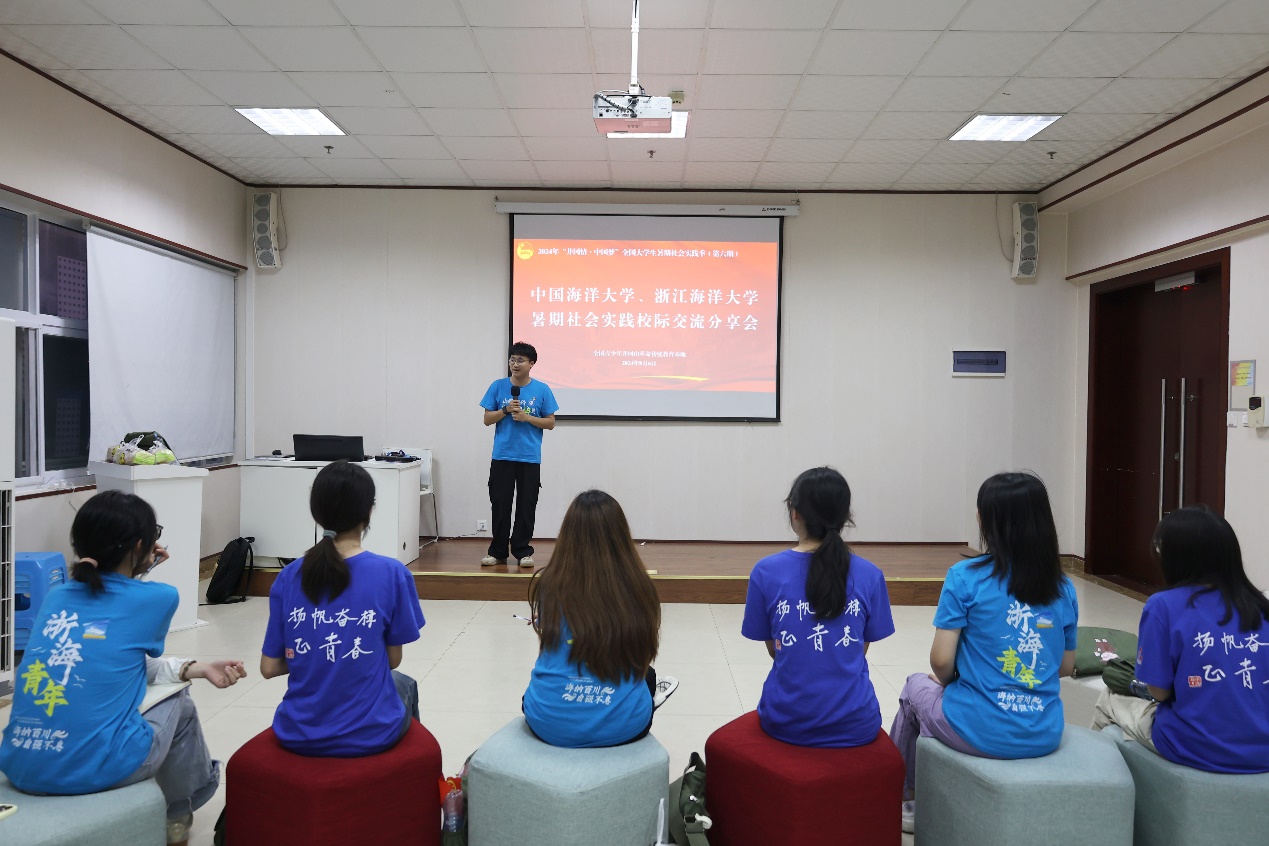 来自中国海洋大学实践团的同学们以“樱花大道的浪漫”“学生活动的丰富”“海上实习的乐趣”“科普工作的热情”为主题,向大家介绍了中国海大樱花节系列活动、东方号3号远洋实习、海洋化学开放日等特色校园品牌。中国海洋大学实践团指导教师王祖甜指出,今年是中国海洋大学建校100周年,希望两校秉持“海纳百川、取则行远”和“海纳百川、自强不息”的校训精神,要经略海洋、向海图强,更要加强合作、互相学习,共同为海洋强国建设贡献青年力量、海大智慧。