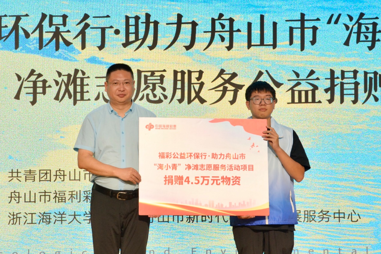 为进一步夯实“海小青”志愿服务在助力舟山现代海洋城市建设过程中的重要作用,激励更多热爱环保公益的青年群体加入“海小青”护海净滩志愿服务活动中来,舟山市福利彩票管理中心为“海小青”志愿者代表、小干岛滩主施辰阳提供了4.5万元物资。