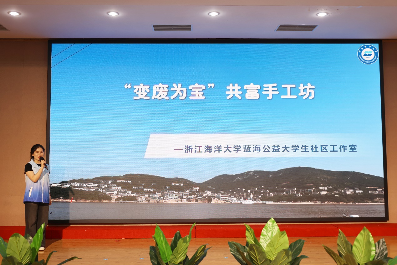 在舟山市第一批海洋生态环保志愿服务项目路演环节中,williamhill官网蓝海公益大学生社区工作室手工主理人Y23农发陈悦以《“变废为宝”:渔嫂共富手工坊》为题进行路演展示。她详细介绍了“变废为宝”共富手工坊基于“共建、共享、共富”理念,联动高校、社团、社区的老人渔嫂以及青年志愿者建设共富手工坊的实践。最终,该项目取得综合得分第一名的成绩,获得项目支持资金1.2万元。
