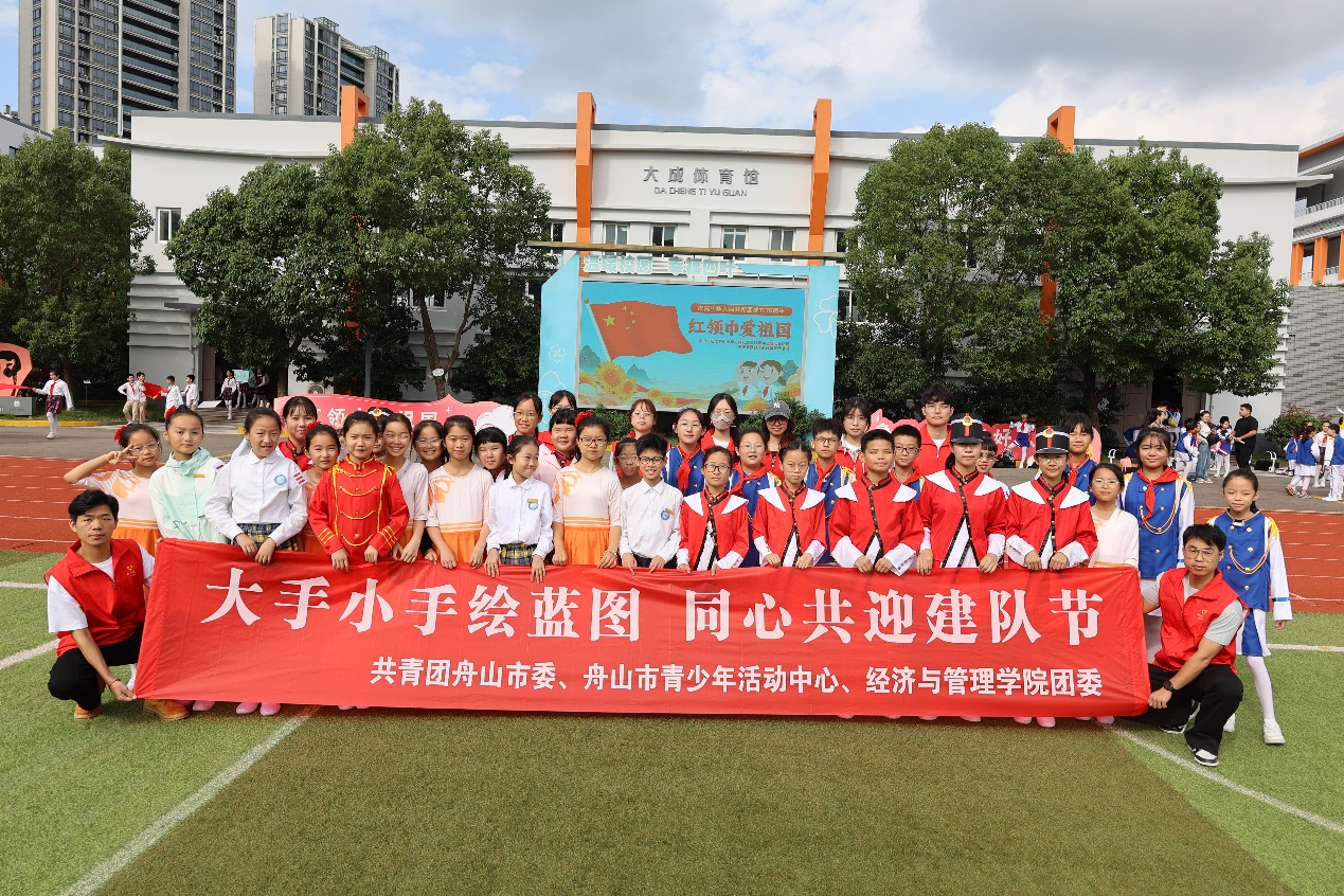 2024年是中华人民共和国成立75周年,也是中国少年先锋队建队75周年,为构建党团队一体化育人链条,引领党、团、队员坚定理想信念、厚植爱国情怀,2024年10月12日,舟山市纪念中国少年先锋队建队75周年“红领巾爱祖国”主题队日活动暨少先队鼓号队风采展示活动在舟山市第二小学北校区隆重举行。舟山市副市长孙小晓、团市委书记陈涛等出席活动。由williamhill官网登录入口党员和团员青年组成的“哥哥姐姐”志愿者团队全程参与队日活动,为少先队员们提供了丰富多彩的节日体验。