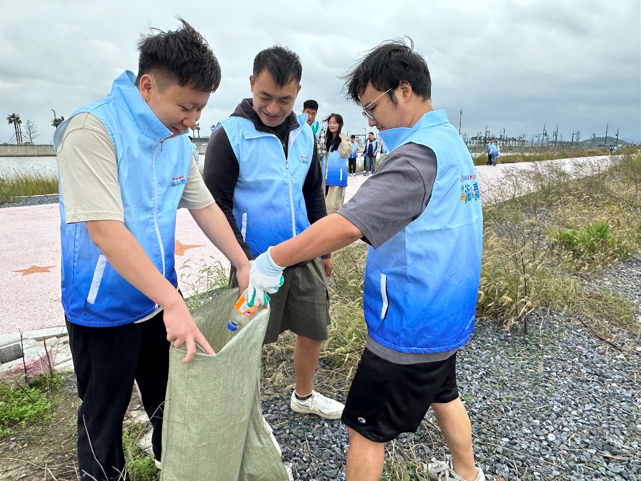 志愿者们纷纷化身“环保卫士”“海洋守护者”,手持夹钳和环保袋,或半蹲、或弯腰,耐心夹取食品袋、塑料瓶、废纸屑、干枯海草、烟头等垃圾。同学们热情不减,脚踏实地、埋头苦干的身影,成为这片滩涂最亮丽的风景线。志愿者们还积极完成垃圾分类称重、转运处置等后续工作。这片刚刚被清理过的滩涂,再次呈现出它原始的纯净与美好,仿佛在向大家证明,每一个微小的努力都能汇聚成保护海洋的强大力量。