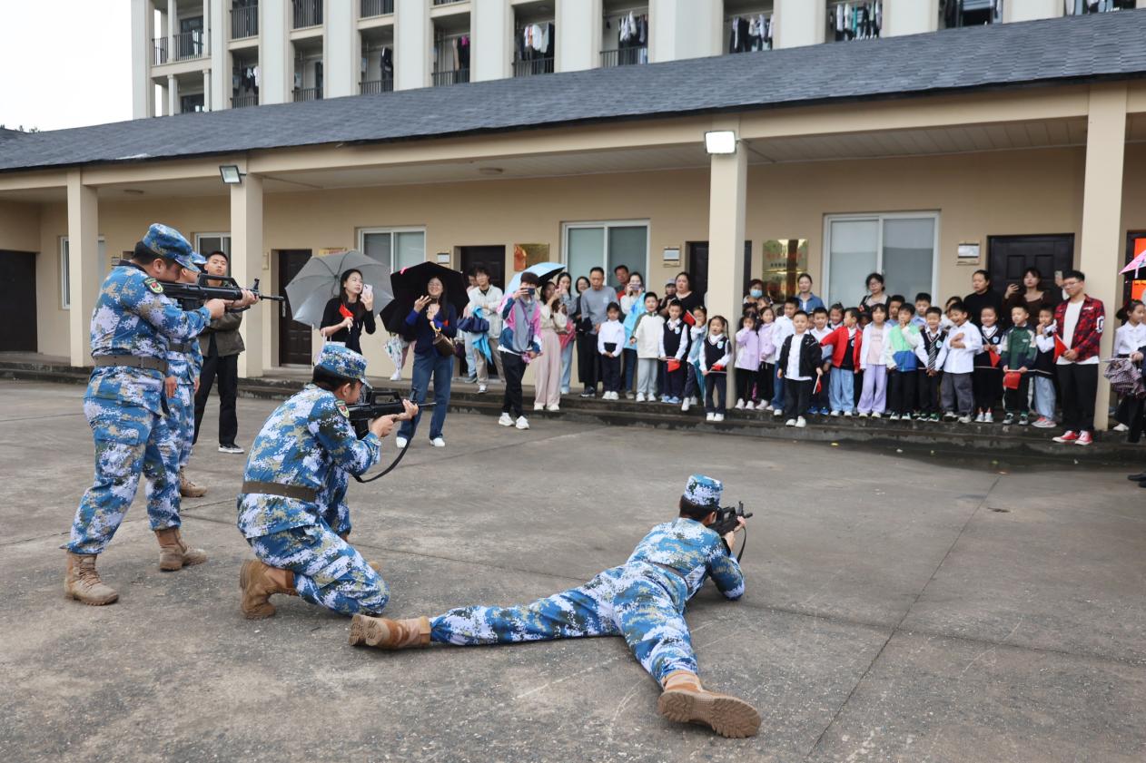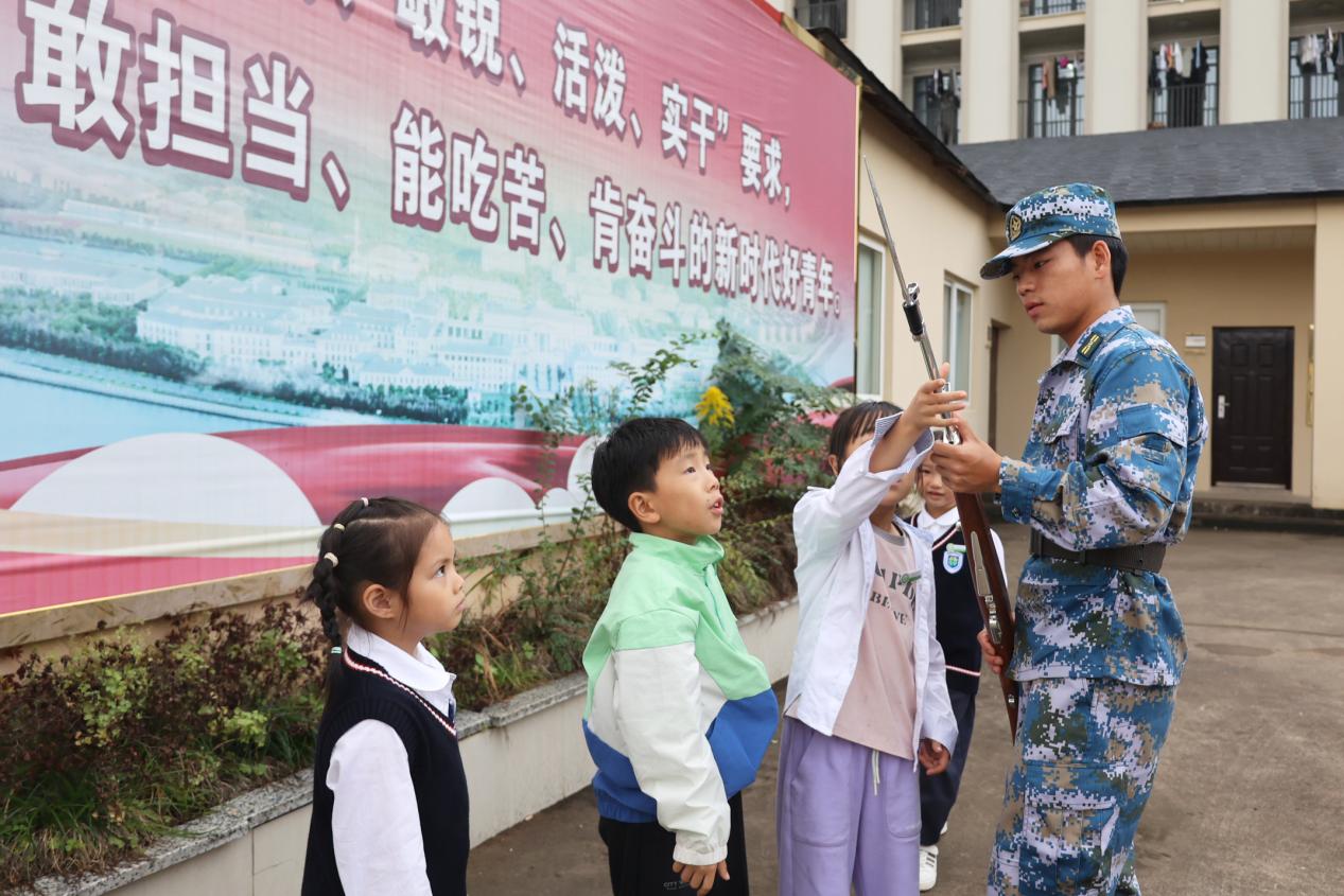 校国防青年先锋连的骨干们还为小朋友们展示了95-1式自动步枪、56-1式礼宾枪的结构与操作原理,讲解了其在国防中的重要作用,激发了同学们对国防知识的浓厚兴趣。先锋连的骨干们还为小朋友们展示了步枪射击据枪的立姿、跪姿和卧姿等动作要领,带领他们体验模拟射击,进一步激发了他们对军事技能的好奇心和实践热情,深刻感受到国防教育的魅力。