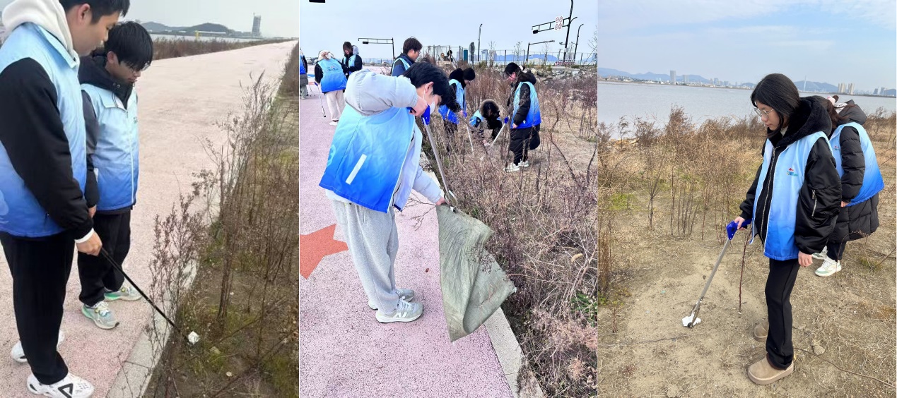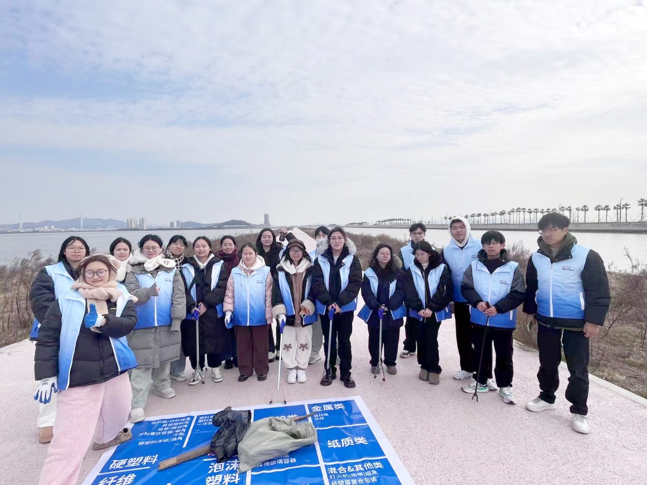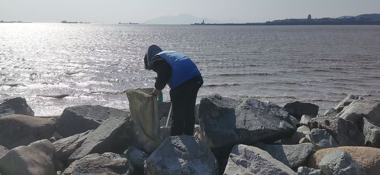 志愿者们化身为“生态卫士”“海洋保卫者”,他们手持夹钳与环保袋,或半蹲、或俯身,细致地夹起食品袋、塑料瓶、纸屑、枯萎海草、烟蒂等垃圾。同学们热情不减,脚踏实地,专注投入的身影,成为这片滩涂上最耀眼的风景。志愿者们还认真完成垃圾分类称重、转运处理等后续任务。经过清理的小干岛滩涂,再次展现出它纯净自然的美丽,仿佛在告诉大家,每一份微小的付出都可以凝聚成保护海洋的巨大力量。