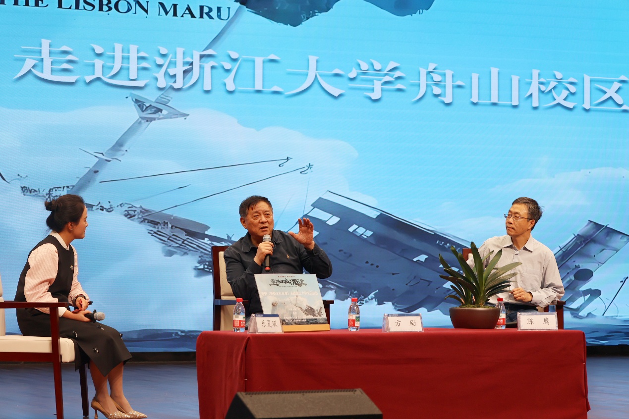 2025年是中国人民抗日战争暨世界反法西斯战争胜利80周年。为进一步深化爱国主义教育,传承红色基因,增强青年的历史使命感与社会责任感,2025年4月15日,williamhill官网登录入口联合共青团定海区委员会组织40名师生代表走进浙江大学舟山校区观看纪录电影《里斯本丸沉没》。影片总制片人/导演方励亲临现场,分享影片摄制历程和幕后故事,为全体师生上了一堂特别的“思政课”。