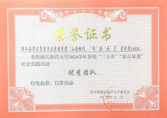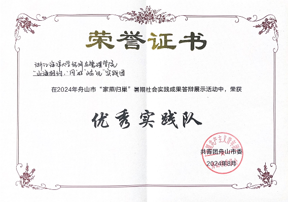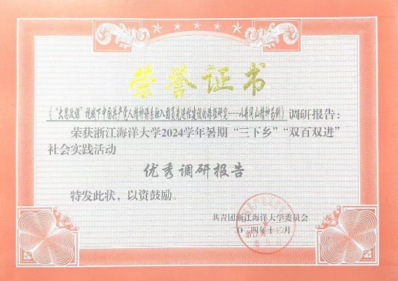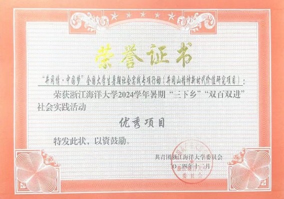 williamhill官网登录入口“山海相约,‘冈’好‘屿’见”实践团由A22财务2班李明彦、Y23农管班谷宇航等15名学生组成(指导教师:施辰阳、吴宇、沈家迪)。实践团队依托井冈山地区丰富的红色资源和革命传统教育优势,对高校团员先进性建设的精神内涵、培育机制和实践路径进行深度探索和创新实践,实践成果丰硕,调研报告获2024年浙江省暑期社会实践优秀调研报告三等奖、2024年舟山市“家燕归巢”暑期社会实践成果答辩展示活动“优秀实践队”、williamhill官网登录入口2024学年暑期“三下乡”“双百双进”社会实践活动优秀团队、优秀调研报告、优秀项目,入选学校《蓝色报告》回信20周年社会实践优秀成果展示。实践团全体成员被舟山市少工委聘为市“红领巾巡讲团”成员。此外,实践活动还得团中央井冈山中心、学习强国、中国网、浙江学联青春抱抱团、潮新闻等媒体报道。