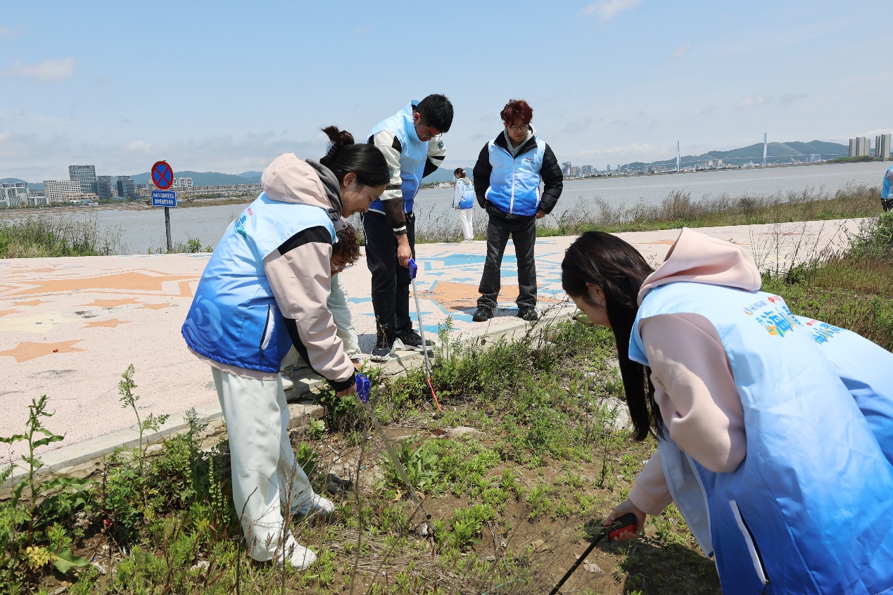 志愿者们化身为“生态卫士”“海洋保卫者”,他们手持夹钳与环保袋,或半蹲、或俯身,细致地夹起食品袋、塑料瓶、纸屑、枯萎海草、烟蒂等垃圾。同学们热情不减,脚踏实地,专注投入的身影,成为这片滩涂上最耀眼的风景。志愿者们还认真完成垃圾分类称重、转运处理等后续任务。经过清理的小干岛滩涂,再次展现出它纯净自然的美丽,仿佛在告诉大家,每一份微小的付出都可以凝聚成保护海洋的巨大力量。