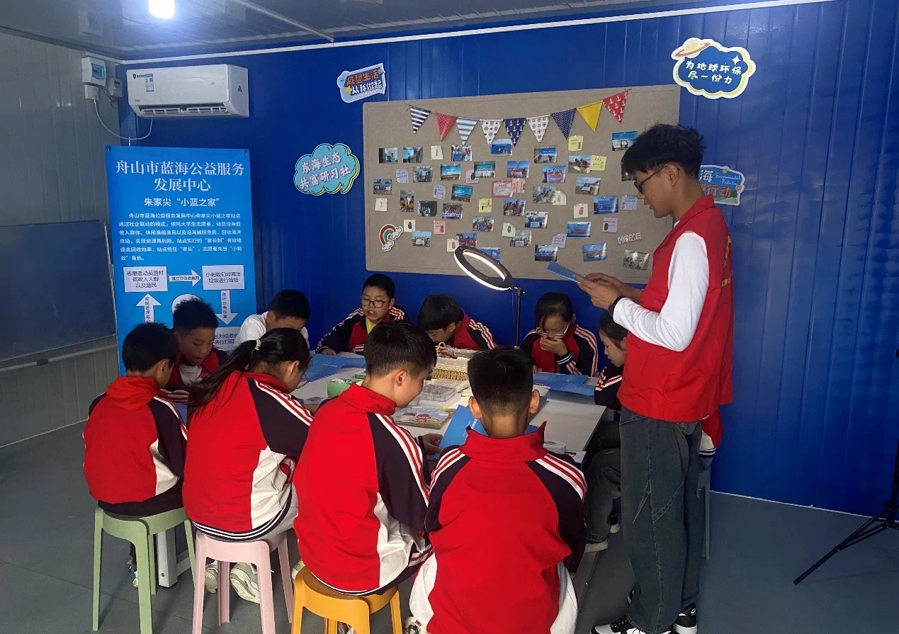 项目名称中的“SHU”富有巧思:既寓意“换书”——用可回收塑料垃圾兑换书籍和手工艺品,将环保与知识传播相结合;又指“换舒”——守护海洋生态舒适环境,让碧海蓝天成为日常;更体现“换殊”——探索打造独特海岛减塑样本,为沿海生态治理提供“舟山范式”。自项目启动以来,已开展18场志愿服务活动,累计吸引130余名大学生青年志愿者、5个社区和200多名居民参与;并与《舟山日报》等媒体深度联动,携手“东海生态共富研习社”带动渔民清漂作业,形成“高校—社区—产业”协同共治链条。2024年9月,小干海洋减塑教育舱正式落地,成为舟山“无废城市”建设中的青春样板。