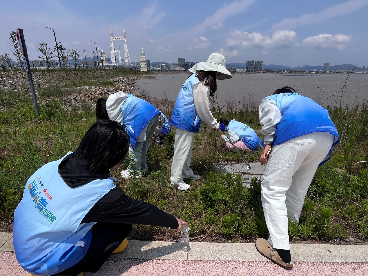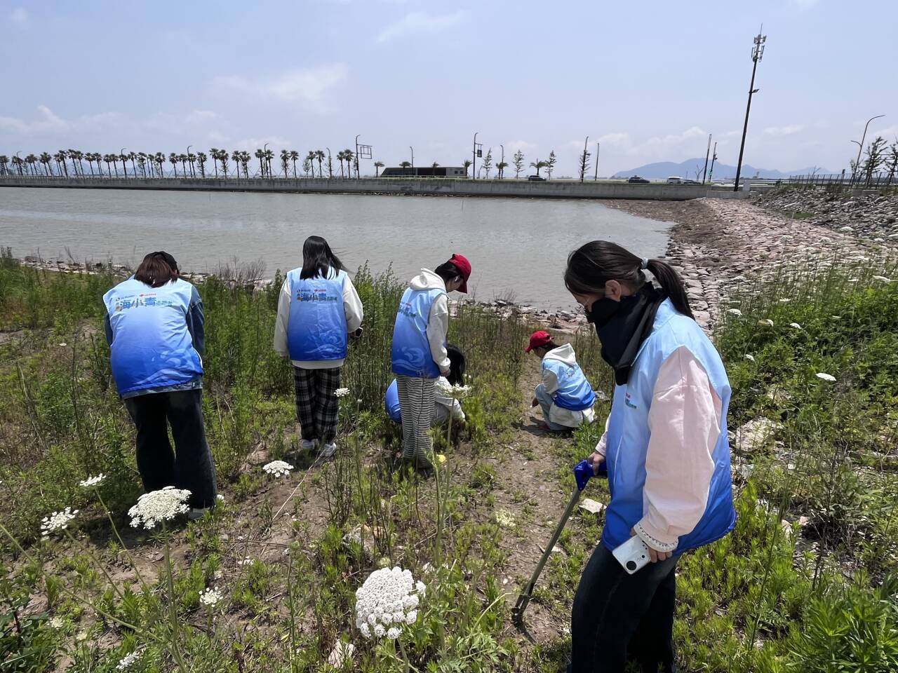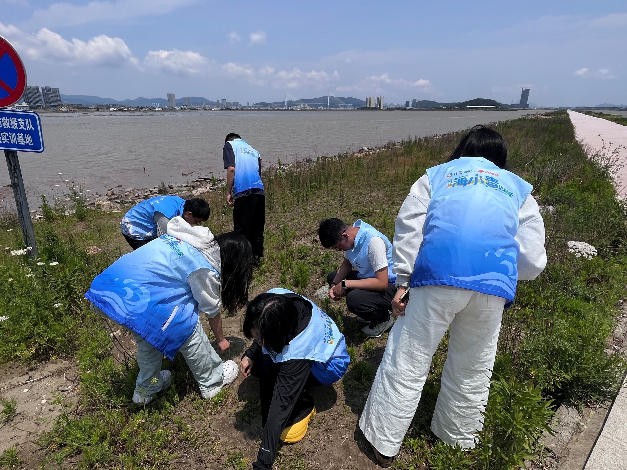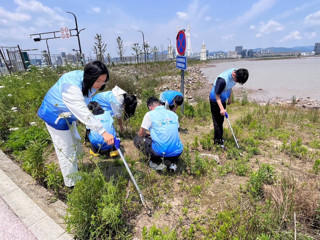 志愿者们化身为“生态卫士”“海洋保卫者”,他们手持夹钳与环保袋,或半蹲、或俯身,细致地夹起食品袋、塑料瓶、纸屑、枯萎海草、烟蒂等垃圾。同学们热情不减,脚踏实地,专注投入的身影,成为这片滩涂上最耀眼的风景。志愿者们还认真完成垃圾分类称重、转运处理等后续任务。经过清理的小干岛滩涂,再次展现出它纯净自然的美丽,仿佛在告诉大家,每一份微小的付出都可以凝聚成保护海洋的巨大力量。