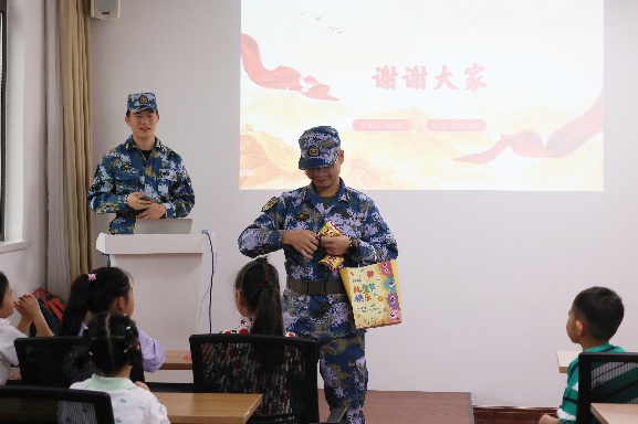 学校国防青年先锋连退役大学生杨俊杰、汪彬同学用通俗易懂的语言,为孩子们娓娓道来国防的重要性。他们用生活中的小故事让孩子们明白:危险或许就藏在日常一念之间,切莫因眼前小利而忘却家国大义。国防知识有奖问答环节更是热烈有趣,孩子们在欢笑与思考中对国防有了更为直观的认知,在心中播下了“从小爱祖国、长大护家园”的种子。