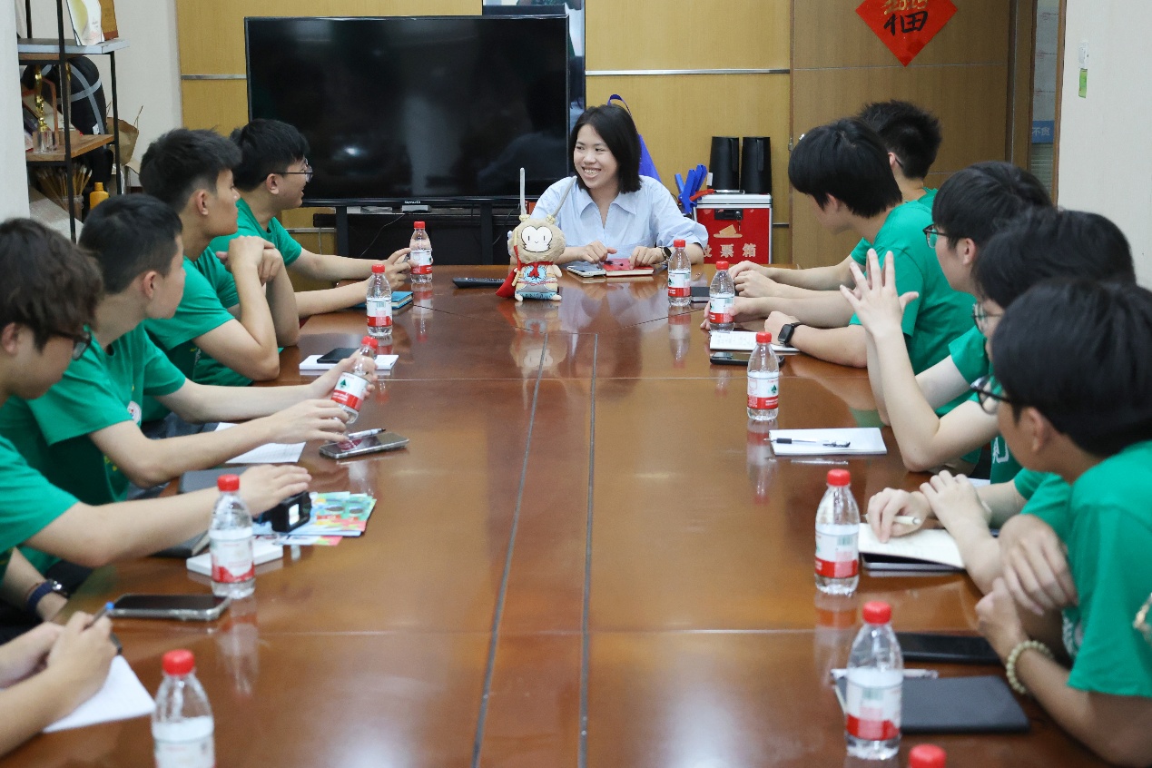 第一站,服务队来到团嵊泗县委。团嵊泗县委副书记傅思佳向服务队师生一行的到来表示热烈欢迎。傅思佳副书记以“共学铸魂”“共建促融”“共创有为”为关键词,向服务队一行介绍了团县委在县委、县政府的坚强领导和团市委的有力指导下,紧紧聚焦县委“1615”行动,围绕“两美嵊泗”建设、创新强县等重点工作任务,持续打造一批有思想、有情怀、有作为的青春品牌项目,团结引领全县广大团员青年为走好海岛县高质量发展共同富裕特色之路,加快建设特色鲜明、独具魅力“海上明珠”的青年实践。双方还围绕青年发展型县域建设、“青年实干家计划”推进、新时代文明实践志愿服务、非遗文化传承推广等内容展开深入交流,并就如何进一步加强双方合作交换了意见。