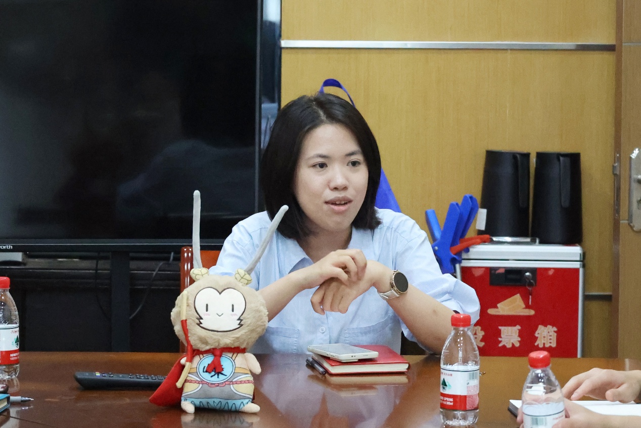 第二站,服务队来到嵊泗县文化和广电旅游体育局。文广旅体局产业发展规划科文化和旅游信息服务中心副主任吴子翰向服务队师生详细介绍了嵊泗县在践行“两山”理念、推进文旅融合、助力生态文明建设等方面的重点举措。他指出,近年来,嵊泗县以“一港两岸”滨海风景线建设为抓手,积极推动文旅资源与生态环境协同发展,串珠成链打造“东尽山海 牧心蓝湾”等共同富裕示范带,彰显海岛绿色发展魅力。吴子翰表示,依托国家级“美丽海湾”创建和国家海洋生态修复项目,嵊泗在生态旅游、海岛公园、美丽渔村等领域持续发力,着力将生态优势转化为发展胜势。他鼓励海大学子关注乡村振兴与生态建设的融合路径,结合自身专业所学,为推动“绿水青山”向“金山银山”转化注入青春力量。