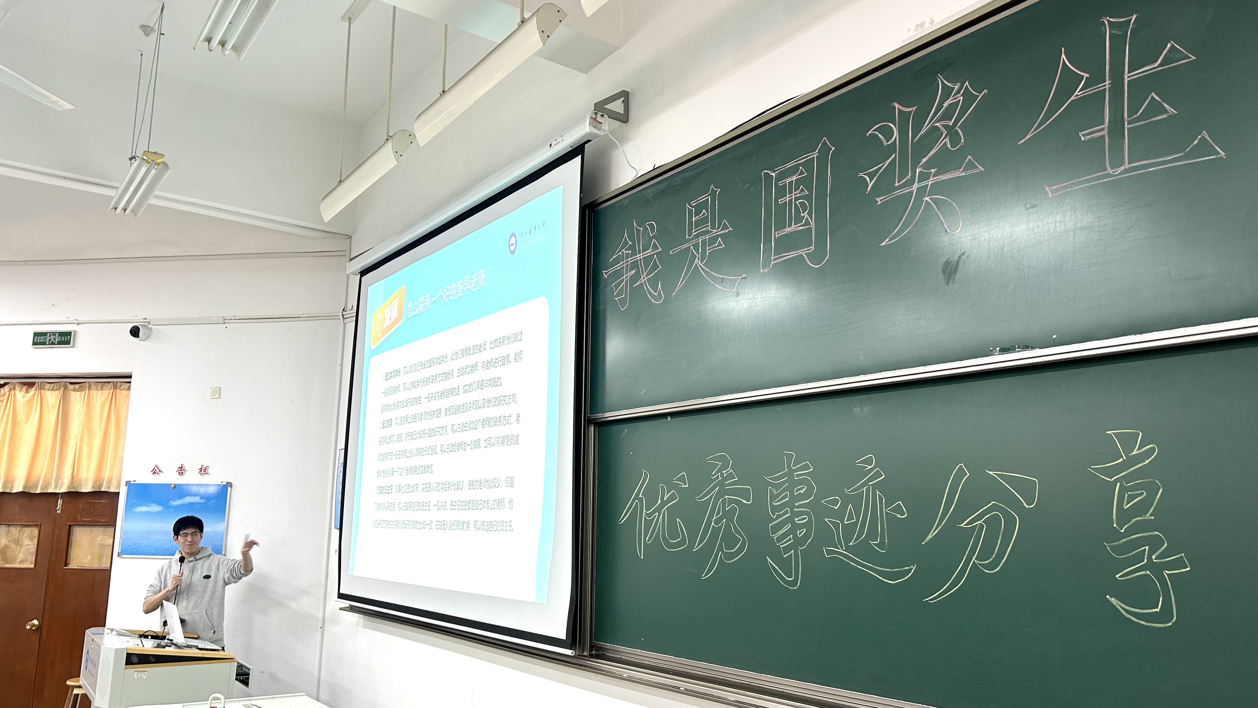 在两位优秀国奖生分享完之后,辅导员张晏铭老师也表示他深受感触。他在分享会上总结到:“事虽难做则必成,路虽远行则必至。如今成就满满的优秀学子,背后也藏着他们日积月累和持之以恒的付出和坚持。”他也勉励同学们要好好珍惜和把握大学时光,多去做有意义的事情。