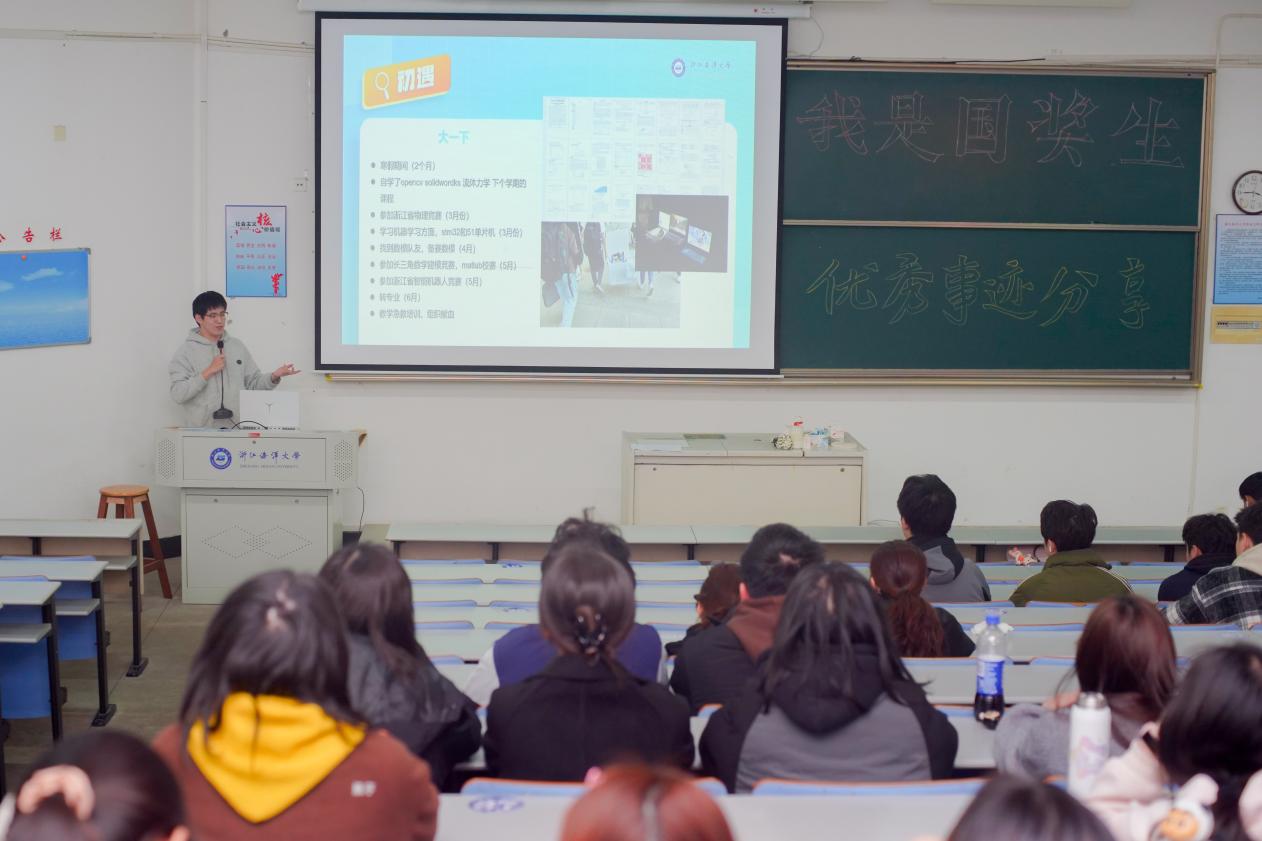 为充分发挥优秀学子的榜样引领作用,激发同学们的学习热情和进取精神,在校园中营造积极向上、共同进步的良好氛围,williamhill官网登录入口3月19日在定海校区153教室举办了“我是国奖生”——优秀学生事迹分享会,活动旨在帮助同学们获得清晰的学业规划思路,找到适合自己的成长路径。