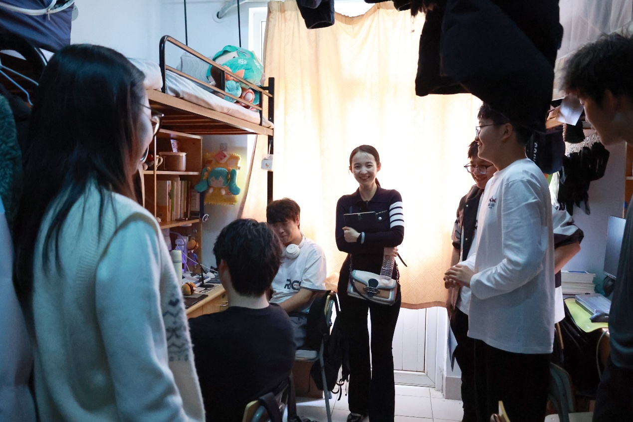 学院领导和辅导员老师们走进寝室与同学们亲切交谈,详细询问了宿舍的居住环境、课程学习和论文课题的进展情况、参与学生组织与校园文体活动情况,以及校外实践、志愿服务的参与度和寝室文化建设现状。对于同学们提出的学业发展、职业规划、科研进展等方面的问题,老师们也给予了细致入微的指导和温暖贴心的回应。老师们强调,校园生活不仅是学业提升的重要阶段,更是个人成长和全面发展的关键时期。老师们希望同学们珍惜宝贵的校园时光,主动参与各类校园活动和社会实践,在提升专业素养的同时,拓展综合能力和视野。研究生同学还应注重科研能力的培养与学术素养的提升,积极参与课题研究、论文撰写及学术交流活动,努力在专业领域内实现更高层次的发展。