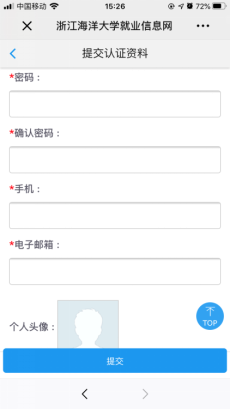 4.设置密码(密码要求:密码不少于8位,必须包含字母和阿拉伯数字)并填写手机号和电子邮箱,最后点击“提交”即可