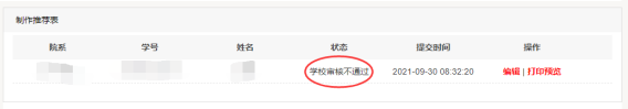 电子版就业推荐表学校审核通过后,如需修改,可联系学院辅导员取消审核,取消审核后的界面如下图,即可再次编辑提交。