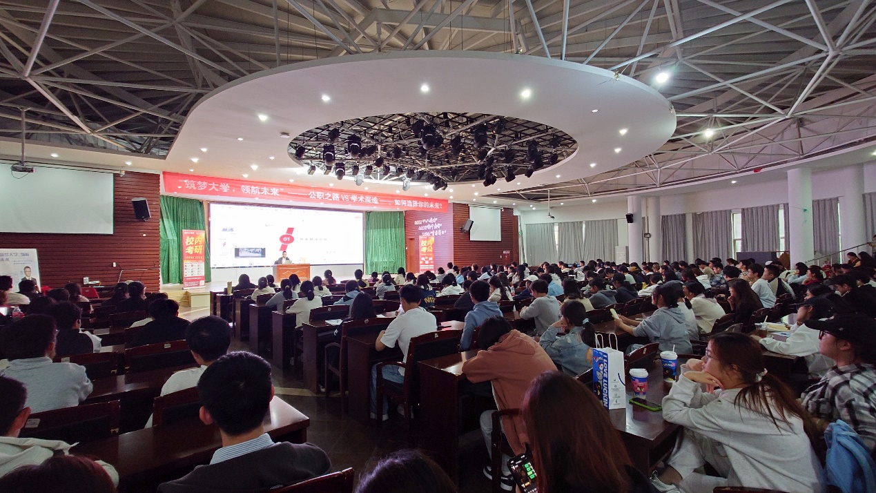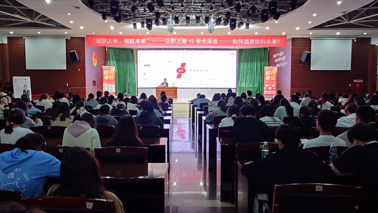 随后,马伟伟校友团队合作伙伴宋滨炳老师以《公职之路VS学术深造——如何选择你的未来?》为主题,为2024级本科新生们开展了一场精彩的就业专题讲座。宋滨炳老师以丰富的个人职业经验和对社会发展趋势的深刻洞察为基础,从就业市场需求、社会经济变化以及个人职业发展路径等多个角度,详细分析了公职和学术两条道路的利弊。他指出,公职之路具有稳定的收入来源和良好的社会保障体系,适合追求稳定发展的同学,而学术深造则为追求知识创新和高端技术岗位的同学提供了更为广阔的发展平台。宋老师特别强调,无论选择哪条道路,最重要的是结合自身的兴趣和长远职业目标,才能在未来的职场中获得成功和满足。他鼓励同学们在做选择时,不仅要考虑当下的考试准备,还要把眼光放长远,思考职业规划的深度与广度,为未来的职业生涯打下坚实基础。