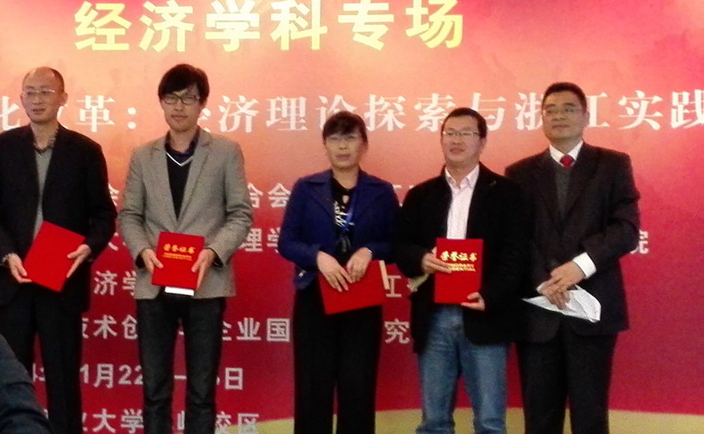 2014年11月21日,williamhill官网登录入口的四位老师参加了浙江省社会科学界第二届学术年会暨经济学年会。其中沈最意老师撰写的著作《税收及其政策效应的非参数分析—基于产业结构的视角》和李秀辉老师撰写的论文《互联网金融热潮中的泡沫隐忧—基于科技发展与金融泡沫的视角》荣获浙江省经济学会2014年度优秀成果奖二等奖。另外,王洪清老师撰写的论文《发展中国家如何根据海洋环境要求发展地区经济—以中国浙江近岸海域COD排放为例》被推荐申请社省哲学社会科学规划或省社科联科研项目。
