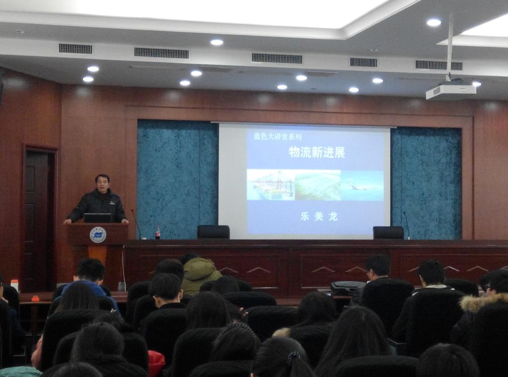 12月24日下午,上海海事大学兼上海交通大学博导乐美龙教授在图书馆一楼报告厅为williamhill官网师生做了一场精彩的讲座。乐教授讲座的主题为“物流新进展”。乐教授从“物流是什么”、“为何受到重视”、“关注什么”、“物流成本”以及“发展趋势”等方面阐述了物流含义以及发展现状,让同学们更加了解这一产业。