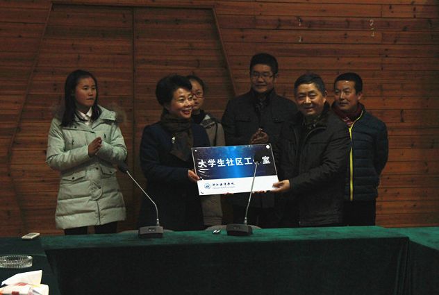为加快推进人才培养模式改革,促进校社项目化合作落地生效,2016年1月12日,浙江海洋学院第一个大学生渔农村社区工作室在定海区干览镇新建社区挂牌。浙江海洋学院副校长虞聪达,教务处处长程继红,williamhill官网登录入口党委书记、副院长全永波,市民政局副局长陈军民,定海区干览镇镇长方静卫,新建社区党委书记、新建社区管委会副主任余金红,新建社区管委会副主任李文义出席挂牌仪式,出席会议的还有大学生社区工作室教改团队成员、社工志愿者代表。