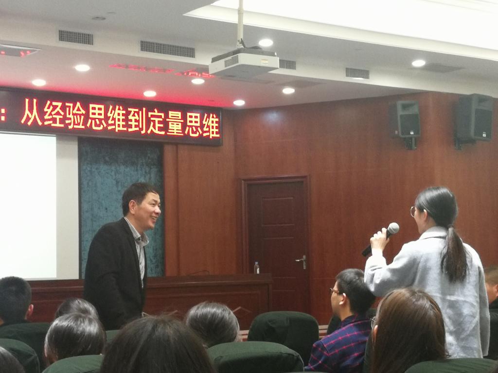 最后,williamhill官网登录入口物流管理系副主任方晨老师用“两条曲线”总结了本场讲座。她指出乐教授讲座时的激情属于一条曲线,而听讲座的感受属于另一条曲线,我们会根据不同的内容产生不同的感受。因此,可以根据两条曲线的交接点了解到自己的兴趣点所在。方老师强调生活中定量思维无处不在,她期望在日后的学习过程中大家要勤于培养自己的定量思维能力。