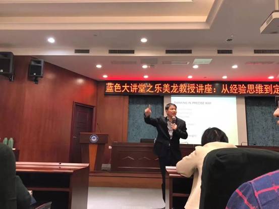 讲座中,乐教授旁征博引、深入浅出,结合自身经历及研究领域,围绕“人际关系”,“性格色彩学”、“情绪曲线”、“人脸曲线”和“吃苦形式”与师生们分享了经验思维与定量思维之间的关系。乐教授指出,要学有所用,勤于思考。作为成年人要能管理好自身的情绪,提升自身表达和思考能力。鼓励大家在讲座后多多交流。
