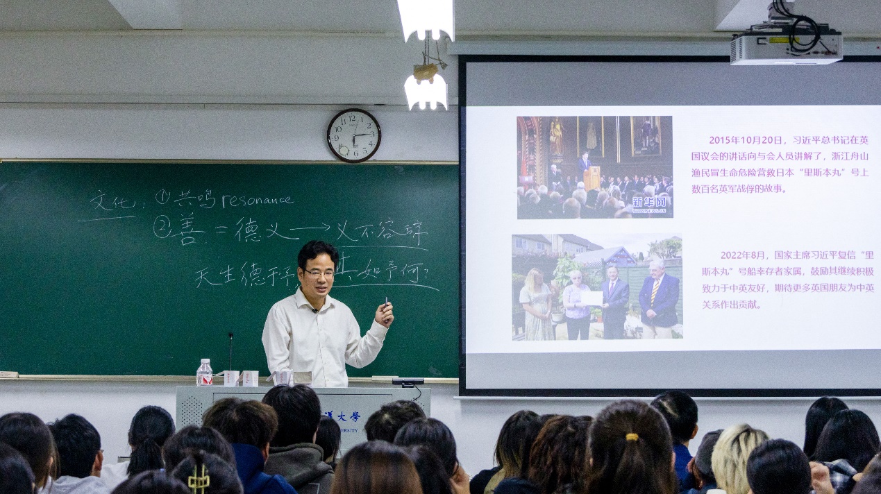 严小军书记以《习近平文化思想》为专题,以电影《里斯本丸沉没》热播和学校纪念“里斯本丸”沉船事件为切入点,讲述了习近平总书记推进中英文化交流,传播中国人民大爱文化,为人类和平贡献力量的文化传承与发展等情况。严书记从为什么建设中国特色社会主义文化、在中西方比鉴中认识中国文化和如何铸就社会主义文化新辉煌等三个方面对习近平文化思想进行了深刻全面的阐释。