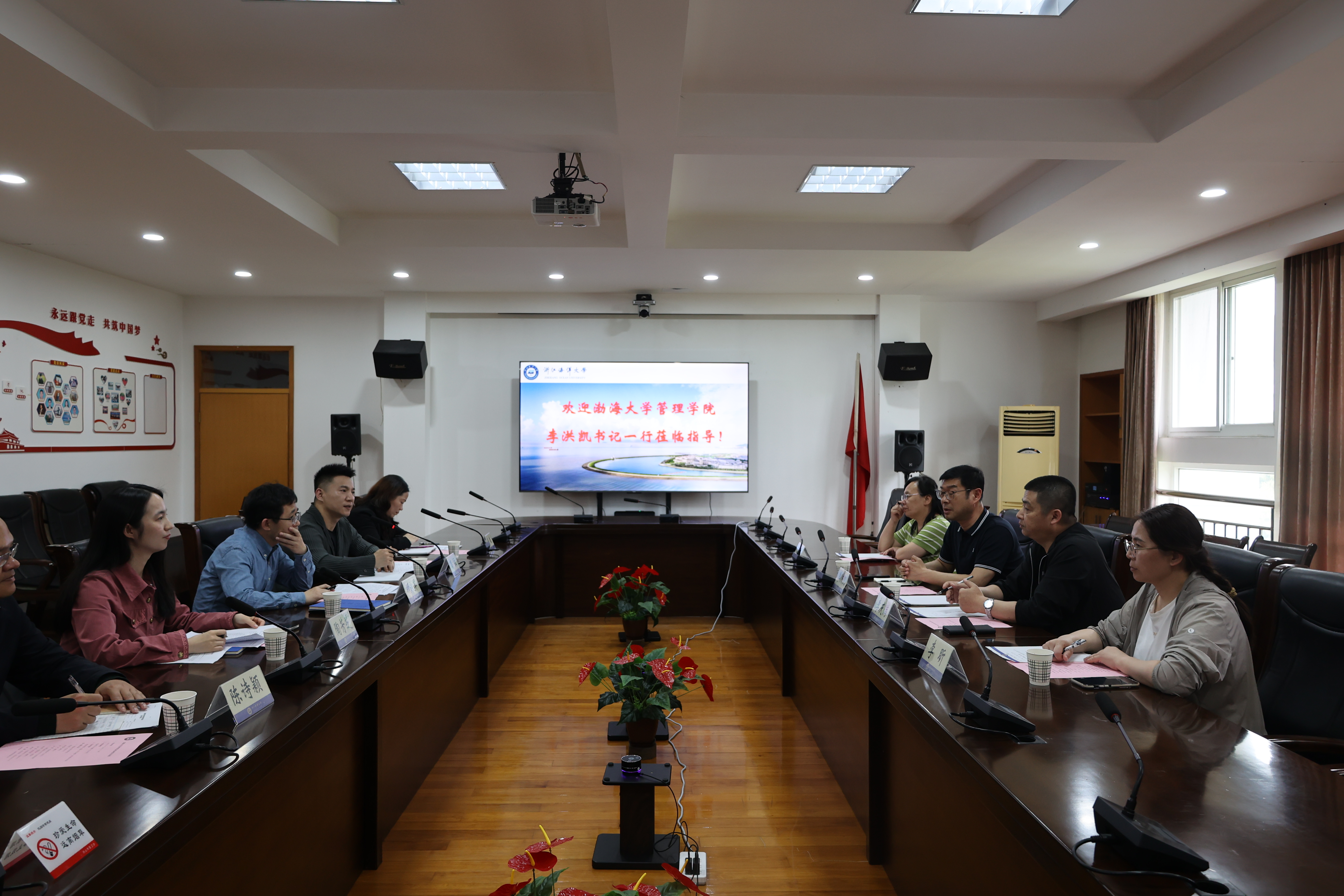 4月24日,渤海大学管理学院党委书记李洪凯一行到访williamhill官网登录入口,双方在定海校区行政楼2号会议室开展座谈交流会。williamhill官网登录入口副院长顾波军、高猛,党委副书记兼纪委书记陶芳芝,综合办公室主任陈毓,工商管理系副主任陈诗颖参加座谈会。高猛副院长主持会议。