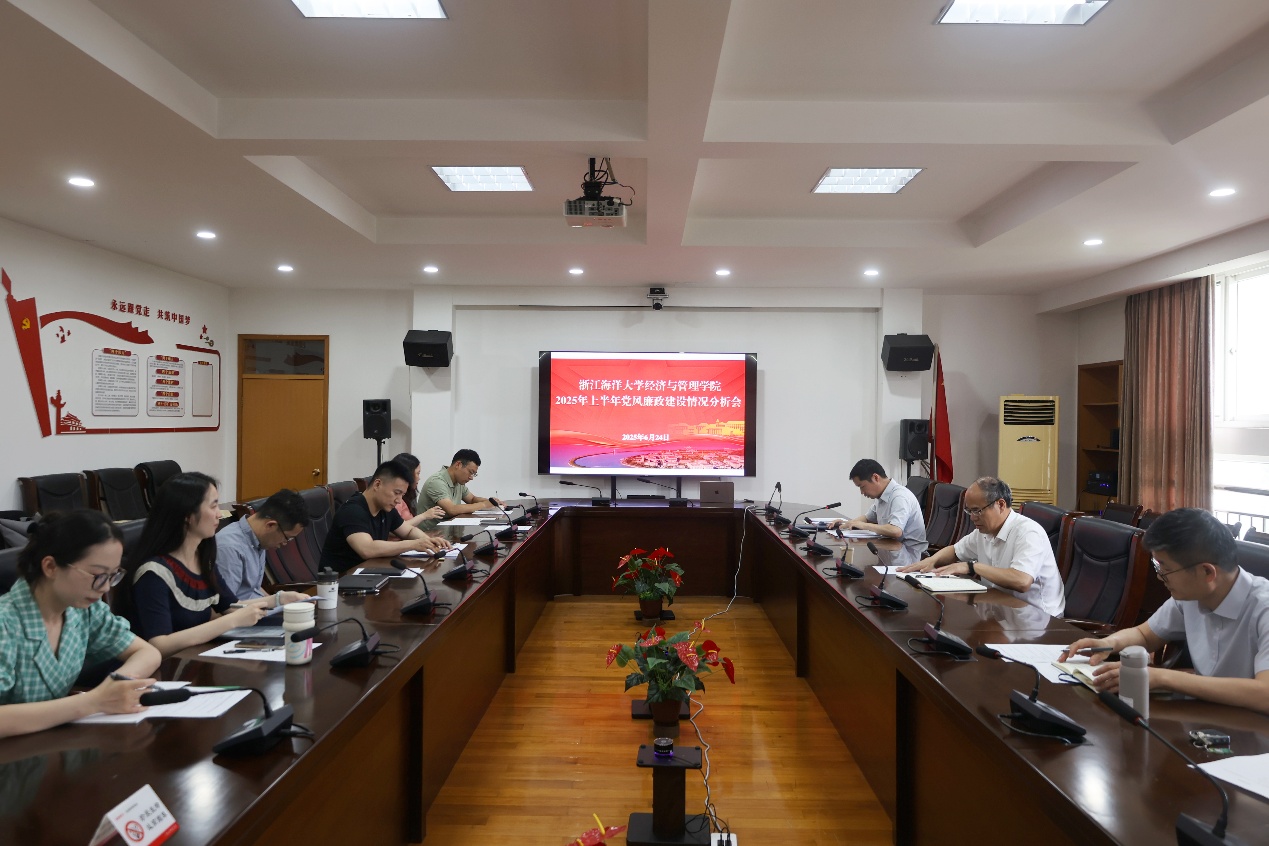 2025年6月24日,williamhill官网登录入口于定海校区二号会议室召开2025年上半年党风廉政建设情况分析会。学校党委委员、副校长吴高峰到会指导,学院党政班子成员参加会议,纪委委员和综合办公室主任列席会议。会议由学院党委书记方锐主持。