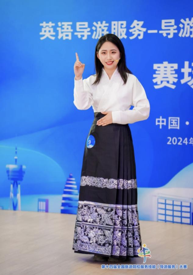 理论考核部分我们需要做的是多刷题。随机抽200道题100分值这是我们大赛中唯一能够主动掌握的分数,必须争取拿满分,后面才有和其他选手竞争的底气。导游讲解分为自选导游景点和专题导游讲解,自选的景点需选择国家级景区并且从小点作为切入点,和自己的指导老师进行不断打磨才能写出一篇合格的导游词,专题讲解则看比赛选手的文化素质和综合能力,前期我准备的三万多字习题讲解并没有被抽到,现场抽题后思考和题干相关的知识,十分钟准备时间列出框架,考验的是选手的现场表现能力,需要理清结构再进行讲解。才艺展示环节大赛评委老师提出:这是一个不断积累的过程,我们在不断学习理论知识的同时不能忘记素质素养拓展,当代青年需要有一技之长。我们要做的是守正创新、提质增效和融合发展。希望学弟学妹们能在之后的大赛里继续发光发热,在此再次感谢我的指导老师们,非常感谢他们的辛勤付出。