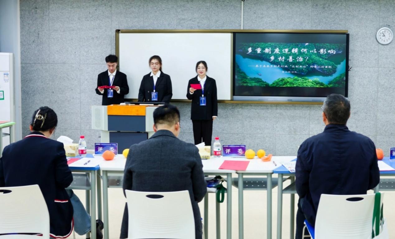 本次大赛(公共管理赛道)共有全省33所高校161支队伍报名参赛,其中本科生参赛队139支。经省赛环节的匿名网评、现场答辩,williamhill官网登录入口的“青山依旧队”(团队成员:朱子豪、朱雨轩、张琦、徐逸蕾、邓群,指导教师:高猛)的作品《多重制度逻辑何以影响乡村善治?——基于未来乡村先行地“众创共治”的青山村案例》获得省赛最高奖项一等奖。