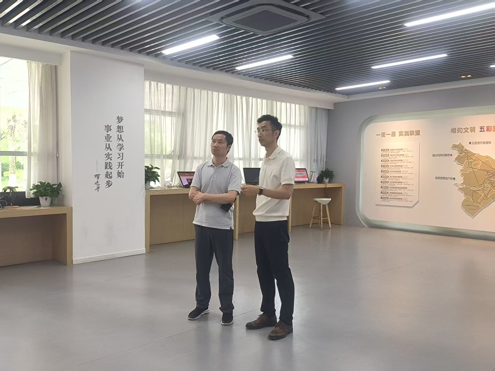 在彩虹堂教育发展有限公司,2007届旅游管理专业校友董衍滔热情接待学院寻访团,讲述“彩虹堂”背后的寓意:“彩虹”象征斑斓多彩的知识,“堂”承载着他投身教育、创办学校的初心。他深情回顾了母校对其四年的悉心培养,尤其感念“海纳百川、自强不息”的校训精神——这股力量伴随他从大三大四的实习起,贯穿旅游行业、温州商学院辅导员、国企岗位、基层村干部等多段经历,最终指引他投身教育事业,创立“彩虹堂”。“前几个月返校,我看到了学校飞跃式的发展,学科更强,师资更优,学生更出色……”谈及母校,董衍滔感慨万千。临别前,他寄语学弟学妹:“要有未雨绸缪的意识,做好阶段性规划,小至期末,大至毕业,这将有助于厘清方向、稳步前行。”他的创业历程,正是校训精神的生动写照。