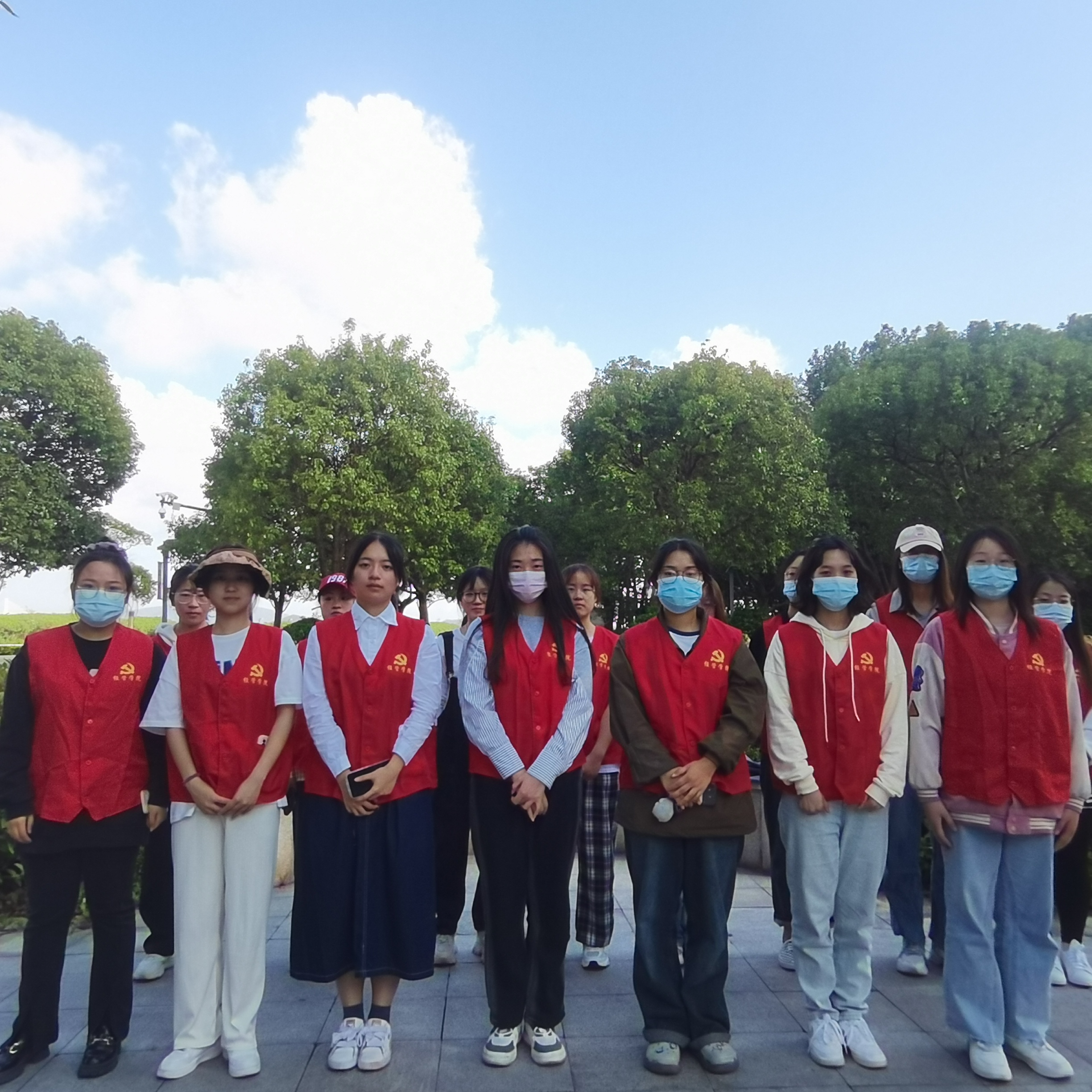 10月22日下午13时50分,志愿者们在北一门国际学术交流中心门口集合完毕,穿上鲜红耀眼的党员志愿者服,准备进行活动。下午14时整,志愿活动正式开始。